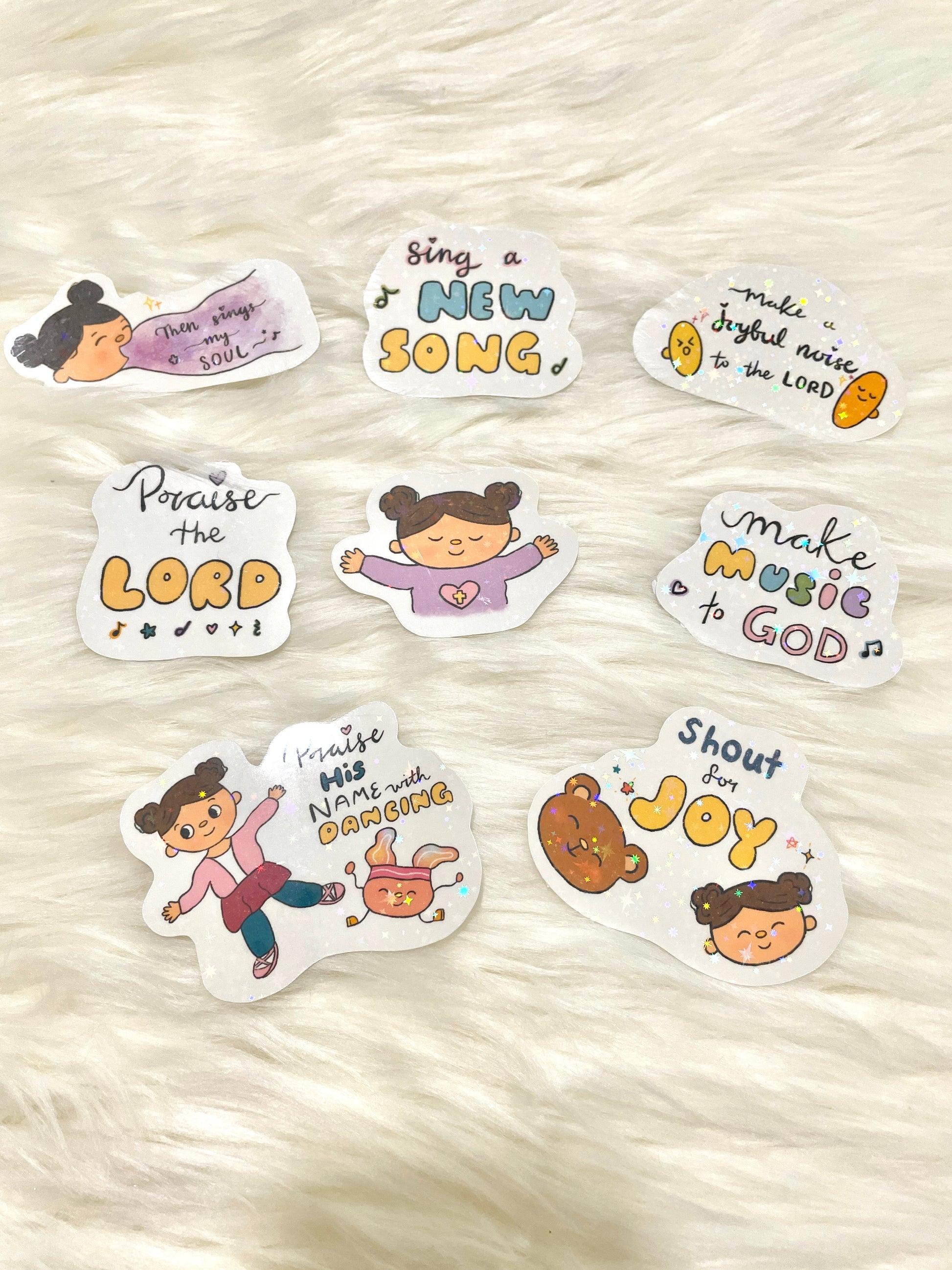 The worship theme sticker set contains 8 unique designs inspired by different forms of worship~ They are waterproof and available in both matte and shiny finish so you can paste them on your notebook, water bottle or laptop!